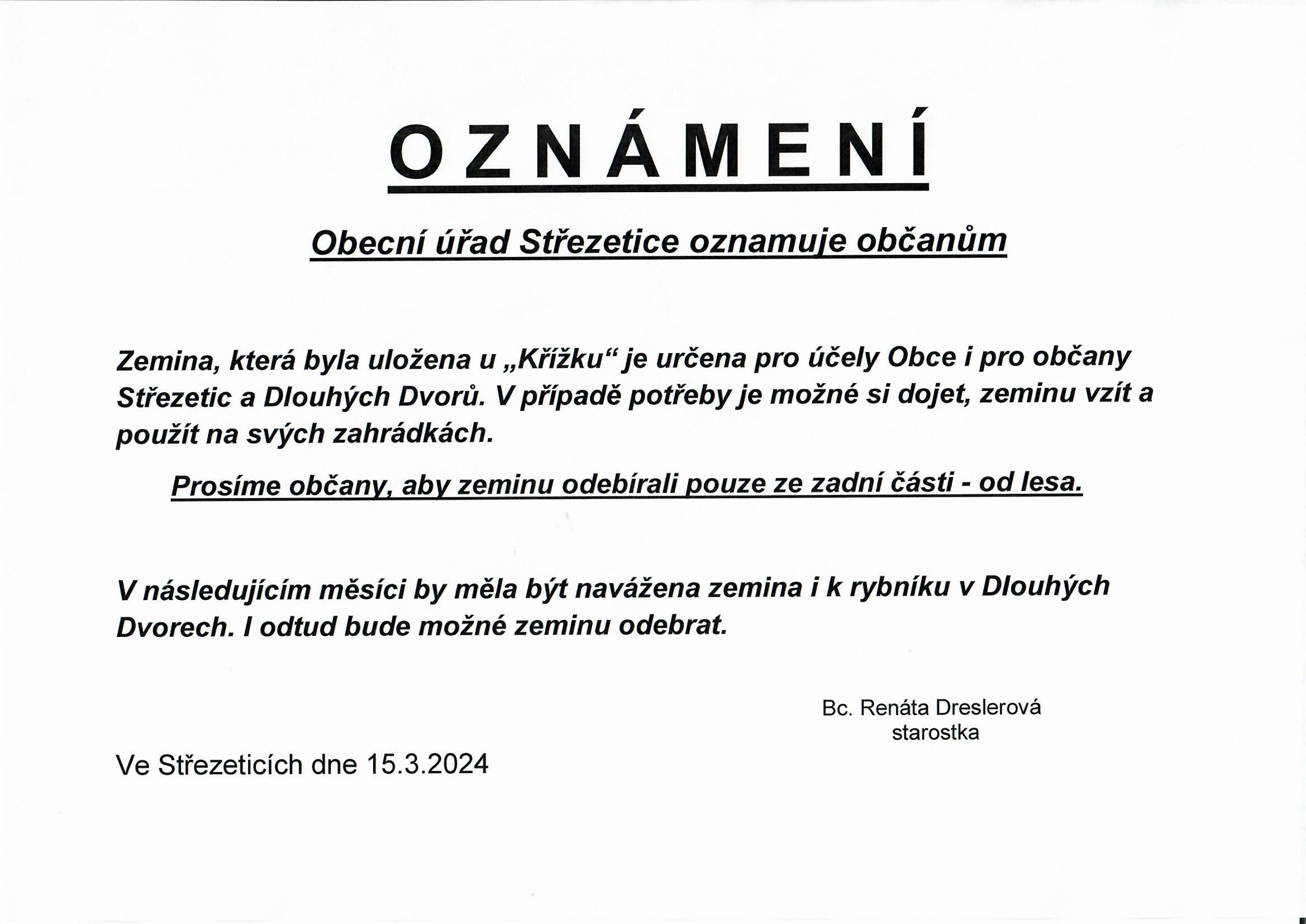 Oznámení - zemina